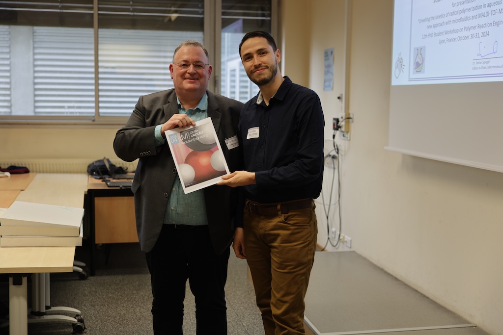 Juan Felipe Hincapié receives the Best Macromolecular Journals Presentation Award in the 12th PhD Student Workshop on Polymer Reaction Engineering