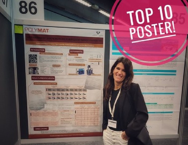 The work presented by Dr. Nora Aranburu has been selected as one of the Top 10 posters presented at the "Frontiers in polymer science"2023 Symposium organised by Elsevier in partnership with Materials Today in Gothenburg, Sweden.
