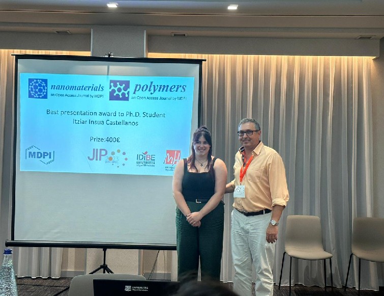 Itziar Insua was awarded as the best oral presentation at the XI Congress of young researchers in Polymers (JIP 2023) which took place in Alicante from October 2 to 5, for her talk about new interpenetrated network hydrogels based on hyaluronic acid.